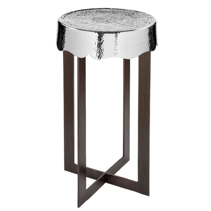 Der Beistelltisch CARUS aus dem Hause Fink ist ein besonderer Hingucker. Auf den ersten Blick fällt die vernickelte Tischplatte ins Auge, mit all den kleinen, von Hand gehämmerten Strukturen. Kein Muster gleicht dem anderen! Diese einzigartige Tischplatte des Beistelltisches CARUS thront auf einem pulverbeschichteten Fußgestellt in der Farbe schwarz-braun. Elegant und zugleich standfest durch solides Material präsentiert sich der Tisch CARUS von Fink. Durch das zeitlose Design lässt sich CARUS perfekt in Ihr bestehendes Ambiente integrieren. Überzeugen Sie sich selbst und werten Sie Ihr Zuhause auf mit dem Beistelltisch CARUS aus dem Hause Fink!