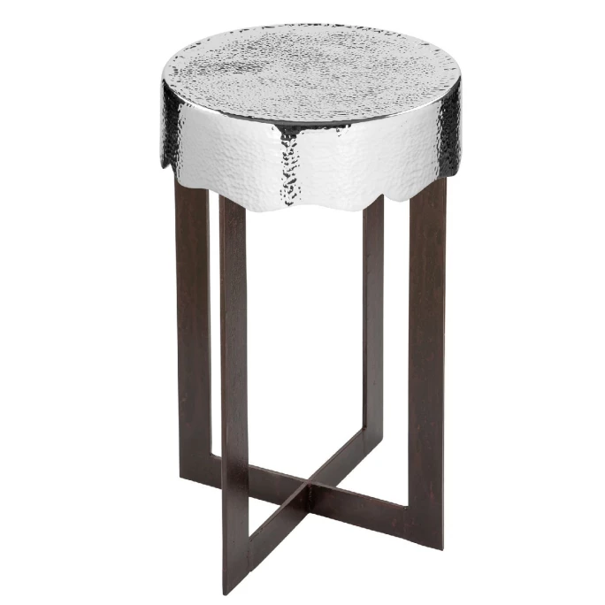 Der Beistelltisch CARUS aus dem Hause Fink ist ein besonderer Hingucker. Auf den ersten Blick fällt die vernickelte Tischplatte ins Auge, mit all den kleinen, von Hand gehämmerten Strukturen. Kein Muster gleicht dem anderen! Diese einzigartige Tischplatte des Beistelltisches CARUS thront auf einem pulverbeschichteten Fußgestellt in der Farbe schwarz-braun. Elegant und zugleich standfest durch solides Material präsentiert sich der Tisch CARUS von Fink. Durch das zeitlose Design lässt sich CARUS perfekt in Ihr bestehendes Ambiente integrieren. Überzeugen Sie sich selbst und werten Sie Ihr Zuhause auf mit dem Beistelltisch CARUS aus dem Hause Fink!