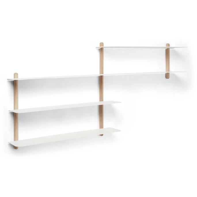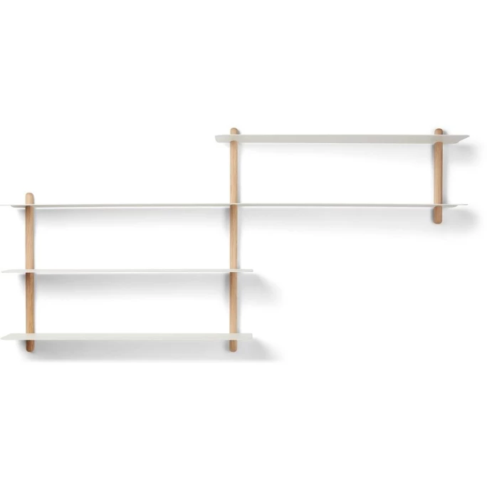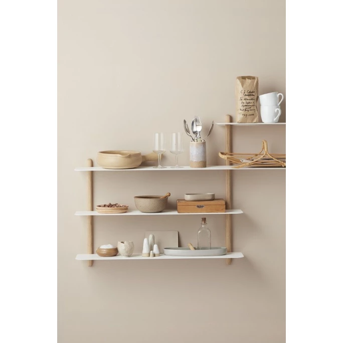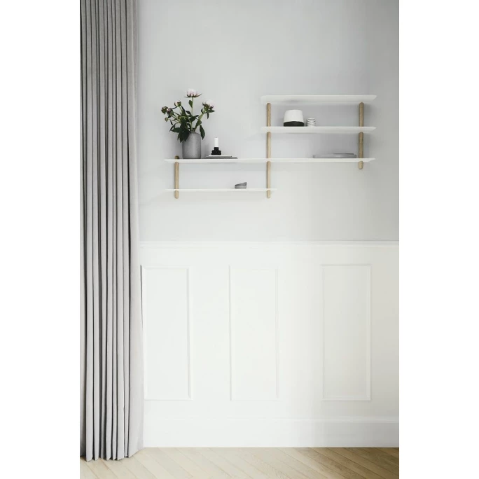 Das elegante Gejst Nivo Regal B ist ein minimalistisches Wandregal, das von Böttcher & Kayser für Gejst entworfen wurde. Ohne unnötige Details und durch klare Linien hängt Nivo B mit den drei beziehungsweise zwei Ebenen leicht und elegant an der Wand. Jede Komponente wurde in Bezug auf Design, Form und Funktion sorgfältig durchdacht, so dass hier jedes Designer-Herz höherschlagen wird. Auswählen müssen Sie nur noch selbst, denn die Nivo-Kollektion von Gejst ist in 10 verschiedenen Varianten erhältlich, je nachdem wie viele Regalböden Sie benötigen. Die maximale Traglast pro Regalboden beträgt 3 Kilogramm. Sichtbare Schrauben fehlen bei dem stilvollen Design komplett, denn die Regalböden und die Eichenholzstangen sind optimal aufeinander abgestimmt, sodass sie einfach in die Holzstangen gesteckt werden können. Dieses einfache System verleiht dem Design eine Leichtigkeit, welche sich auf seine Umgebung ausweitet. Gejst Design ist pures skandinavisches Design und wurde 2013 im dänischen Odense mit der Leidenschaft gegründet, attraktives, nachhaltiges und langlebiges Design zu schaffen, das die Zeit überdauert. Dabei konzentriert sich Gejst auf funktionales Design und die Verwendung hochwertiger Materialien. Das Team von Gejst arbeitet mit renovierten Designern zusammen, die bereits etliche Preise erhalten haben. Holen Sie sich das Gejst Nivo B Regal als Eyecatcher für Ihre Wand und erfreuen Sie sich beim Anblick auf Ihr neues Wandregal.