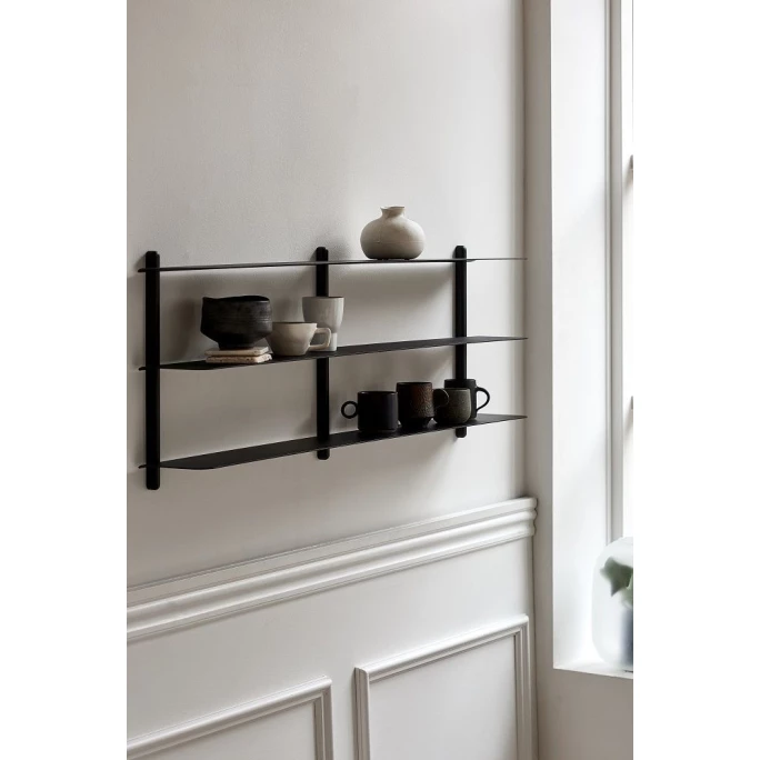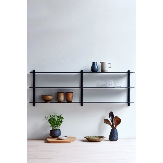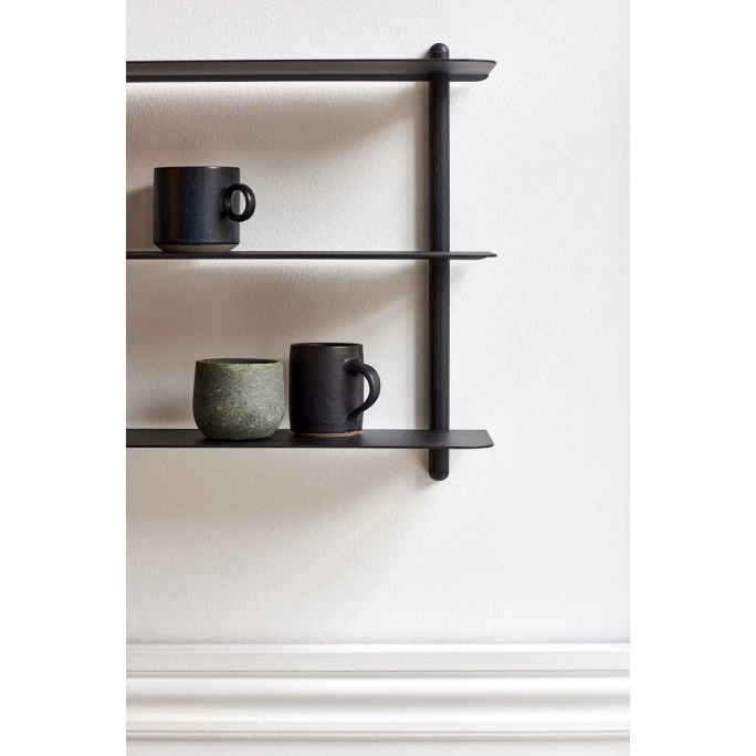 Das stilvolle Gejst Nivo D ist ein minimalistische Wandregal, das von Böttcher & Kayser für Gejst entworfen wurde. Ohne unnötige Details und durch klare Linien hängt Nivo D mit den drei Ebenen leicht und elegant an der Wand. Jede Komponente wurde in Bezug auf Design, Form und Funktion sorgfältig durchdacht, so dass hier jedes Designer-Herz höherschlagen wird. Auswählen müssen Sie nur noch selbst, denn die Nivo-Kollektion von Gejst ist in 10 verschiedenen Varianten erhältlich, je nachdem wie viele Regalböden Sie benötigen. Die maximale Traglast pro Regalboden beträgt 3 Kilogramm. Die Nivo-D-Kollektion enthält auch eine große Large-Version – hier sind die Regalböden in längeren Versionen erhältlich. Sichtbare Schrauben fehlen bei dem stilvollen Design komplett, denn die Regalböden und die Eichenholzstangen sind optimal aufeinander abgestimmt, sodass sie einfach in die Holzstangen gesteckt werden können. Dieses einfache System verleiht dem Design eine Leichtigkeit, welche sich auf seine Umgebung ausweitet. Gejst Design ist pures skandinavisches Design und wurde 2013 im dänischen Odense mit der Leidenschaft gegründet, attraktives, nachhaltiges und langlebiges Design zu schaffen, das die Zeit überdauert. Dabei konzentriert sich Gejst auf funktionales Design und die Verwendung hochwertiger Materialien. Das Team von Gejst arbeitet mit renovierten Designern zusammen, die bereits etliche Preise erhalten haben. Bestellen Sie sich das stilvolle Gejst Nivo D Regal bei uns im Ambiendo-Shop als nützlichen Eyecatcher, der überall einsetzbar ist.