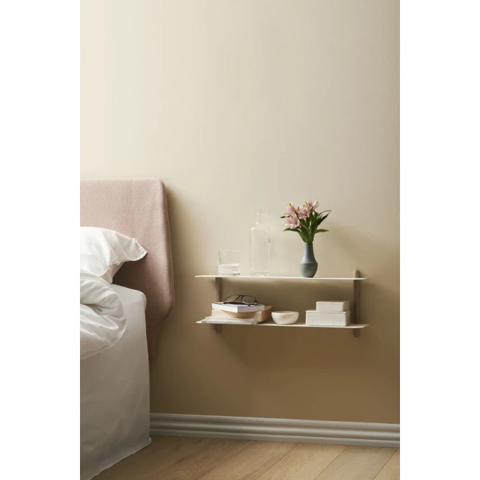 Das gradlinige, elegante Gejst Nivo F Regal, das von Böttcher & Kayser für Gejst entworfen wurde, kommt ohne unnötige Details und wird dennoch zum Hingucker an der Wand. Dank der klaren Linien hängt Nivo F mit den beiden Ebenen leicht und elegant an der Wand. Jede Komponente wurde in Bezug auf Design, Form und Funktion sorgfältig durchdacht, so dass hier jedes Designer-Herz höherschlagen wird. Auswählen müssen Sie nur noch selbst, denn die Nivo-Kollektion von Gejst ist in 10 verschiedenen Varianten erhältlich, je nachdem wie viele Regalböden Sie benötigen. Die maximale Traglast pro Regalboden beträgt 3 Kilogramm. Sichtbare Schrauben fehlen bei dem stilvollen Design komplett, denn die Regalböden und die Eichenholzstangen sind optimal aufeinander abgestimmt, sodass sie einfach in die Holzstangen gesteckt werden können. Dieses einfache System verleiht dem Design eine Leichtigkeit, welche sich auf seine Umgebung ausweitet. Gejst Design ist pures skandinavisches Design und wurde 2013 im dänischen Odense mit der Leidenschaft gegründet, attraktives, nachhaltiges und langlebiges Design zu schaffen, das die Zeit überdauert. Dabei konzentriert sich Gejst auf funktionales Design und die Verwendung hochwertiger Materialien. Das Team von Gejst arbeitet mit renovierten Designern zusammen, die bereits etliche Preise erhalten haben. Bestellen Sie sich die skandinavische Leichtigkeit bei uns im Ambiendo-Shop mit dem Gejst Nivo F Regal und setzen Sie Ihre Wand gekonnt in Szene!