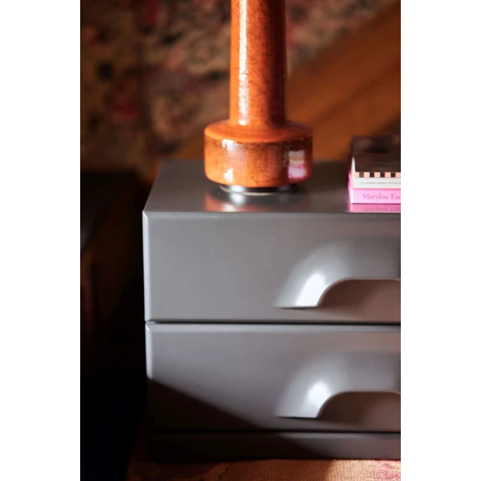 Der tolle Nachttisch mit zwei Schubladen der Design-Manufaktur HK living setzt trendige Akzente in Ihrem Zuhause. Die Schubladen sind sehr praktisch und bieten großen Stauraum für allerlei Kleinigkeiten. Gefertigt aus einer hochwertigen Mitteldichten Holzfaserplatte (MDF) und in schlichten Farbtönen erhältlich begeistert das tolle Designer-Möbelstück mit Stil und Klasse. Zudem ist es besonders pflegeleicht, denn es genügt den Tisch mit einem feuchten Tuch abzuwischen. Fertig! Bestellen Sie jetzt den herrlichen Nachttisch mit zwei Schubladen von HK living und genießen Sie den Komfort hautnah.