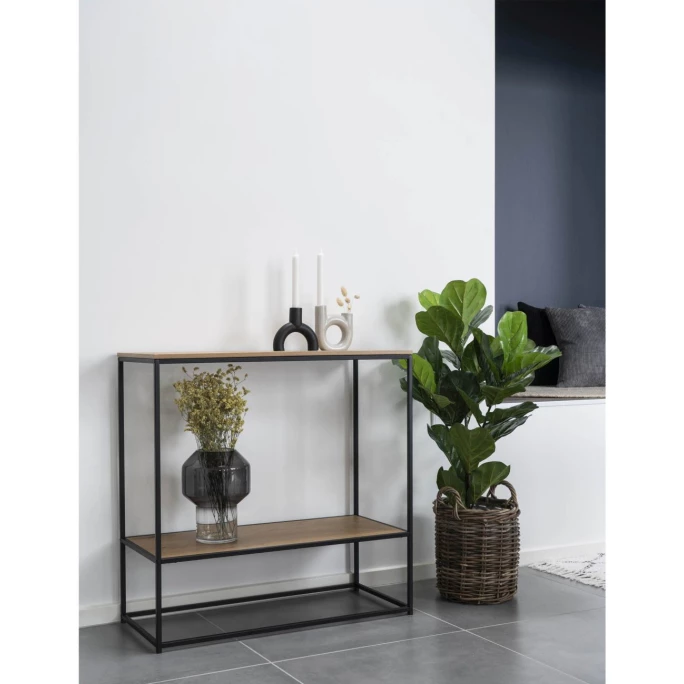 Lassen Sie sich von der wunderschönen Konsole Vita von House Nordic im hübschen Loft-Look begeistern. Die dänische Einrichtungsmarke House Nordic wurde 2017 von Henrik Jørgensen gegründet, und ist sehr schnell zu einer bekannten skandinavischen Trendmarke geworden. Erhältlich in nicht weniger als 27 Ländern, hauptsächlich in Europa, bietet House Nordic eine große Auswahl an Möbeln und Wohnaccessoires, bei denen Qualität an erster Stelle steht. House Nordic verleiht Ihrem Interieur das moderne und lässige Gefühl, das Sie oft im skandinavischen Design sehen. Die wunderschöne Konsole Vita ist aus einem hochwertigen Stahlgestell gefertigt, wobei die zwei Regalbretter aus einer robusten Spanplatte bestehen, die mit einer schwarzen Melaminfolie überzogen wurden. Eine Vielzahl an schönen Wohnaccessoires, finden auf der tollen Konsole, mit zwei Ablage-Abteilen perfekt ihren Platz und lassen sich gekonnt in Szene setzen. Das trendige Designer-Möbelstück ist besonders pflegleicht, denn es genügt mit einem feuchten Tuch zu wischen und es anschließend sanft trocken zu reiben. Fertig! Bestellen Sie jetzt die wunderbare Konsole Vita von House Nordic und Sie erhalten ein robustes Möbelstück im absolut trendigen Look.