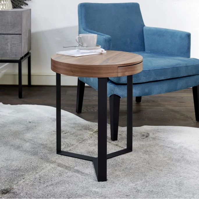 In einem zeitlos schönen Design präsentiert sich die Beistelltisch-Serie HARRY aus dem Hause Lambert. Nur wenige Möbelstücke sind so flexibel in Funktion, Design und Verwendung wie der Beistelltisch. Verwenden sie das Tischchen HARRY zum Beispiel als Couchtisch, Nachttisch oder als Beistelltischchen neben einem Sessel – HARRY bietet alles, was ein gutes Beistellmöbel auszeichnet. Mit hochwertiger Furnierarbeit überzeugt das Möbelstück auf Anhieb, denn Rundungen und Radien zu furnieren, gehört zu den anspruchsvollsten Arbeiten im Möbelhandwerk. Die praktische Schublade vervollständigt das tolle Design. Zum Reinigen genügt warmes Wasser in Verwendung eines weichen Baumwolltuchs, damit leichte Verschmutzungen verschwinden. Bei hartnäckigen Ablagerungen können Sie etwas Neutralseife verwenden, die nach dem kurzen Einwirken sofort wieder abgetragen wird. Vor allem Säuren, die beispielsweise in Fruchtsäften enthalten sind, können das Material angreifen und sollten umgehend entfernt werden. Entdecken Sie noch weitere Lambert-Produkte in unserem AMBIENDO-Shop – Sie werden vom Design und der fantastischen Qualität begeistert sein.