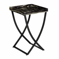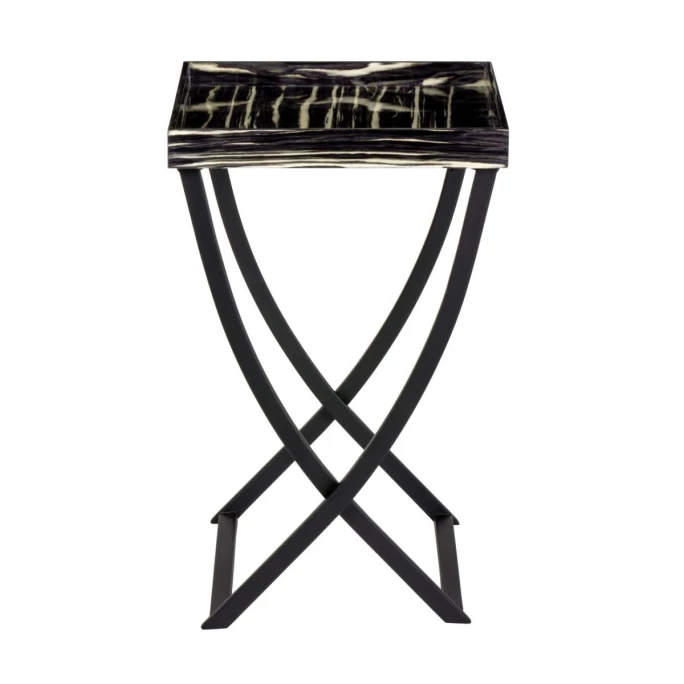 Platzsparend und dekorativ präsentiert sich das Beistelltischchen TRACY ZEBRANO aus dem Hause Lambert. Bei dem Tabletttisch TRACY ZEBRANO handelt es sich um ein kleines Handwerkskunststück, denn das Tablett wird mit einem Furnier in Zebrano Optik belegt und anschließend werden sorgfältig mehrere Schichten Klarlack einzeln aufgetragen und in mehrstündiger Arbeit, mit immer feiner werdenden Schleiflappen poliert, bis der perfekte, tiefe Glanz erreicht wurde. Das schwarze Klappgestell ist in dieser edlen Lacktechnik ebenfalls verarbeitet. Zum Reinigen verwenden Sie bitte nur Wasser und weiche, nicht schleifende Tücher. Scharfe Reinigungsmittel und schleifende Gegenstände zerstören die Oberfläche. Erfreuen Sie sich an dem designstarken Tabletttisch TRACY ZEBRANO von Lambert.