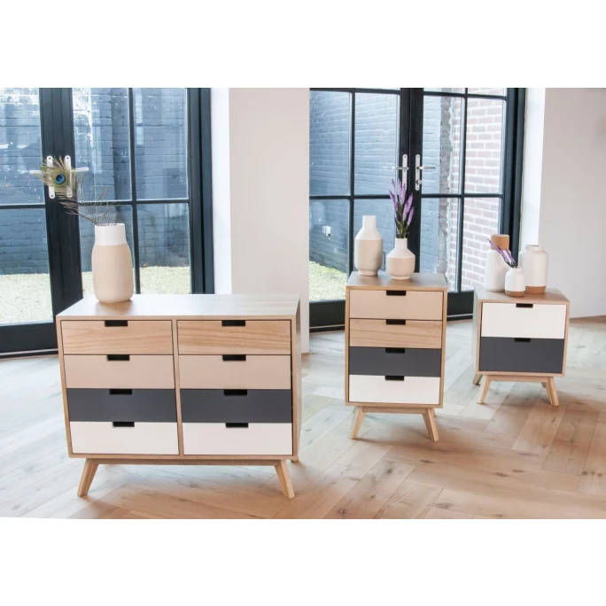 Mit der Kommode Snap aus dem Hause Leitmotiv bringen Sie ein modernes Ambiente in Ihr Zuhause. Angesagte Farben in hellbraun, blau und weiß sorgen für ein skandinavisches Ambiente. Die Kommode Snap von Leitmotiv besteht aus hochwertigem Paulownia-Holz, dieses ist besonders leicht und widerstandsfähig. Einfach ideal für den täglichen Gebrauch. Nutzen Sie das kleine Schränkchen als Einzelstück oder kombiniert mit weiteren Snap-Kommoden. Bereichern Sie Ihre Wohnung mit der Kommode Snap aus dem Hause Leitmotiv!