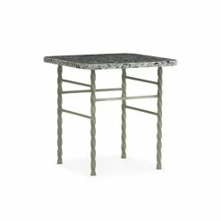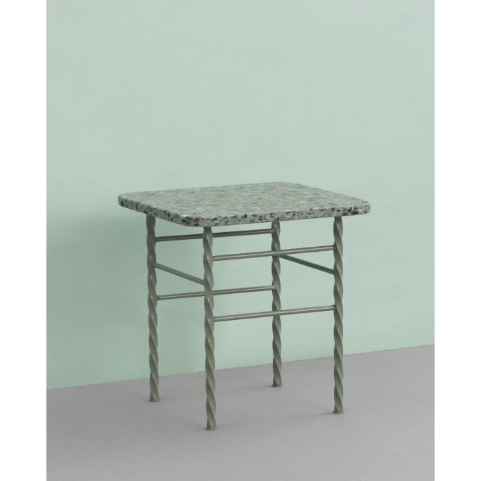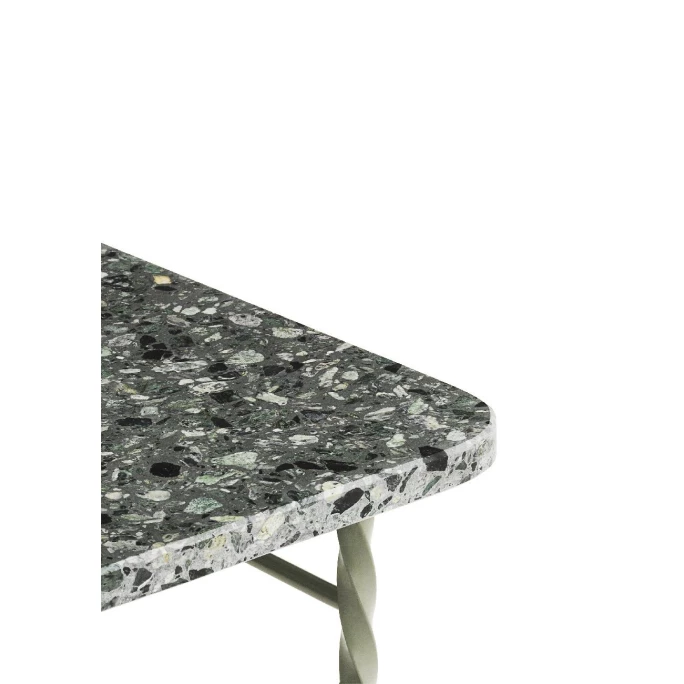 Der Designer Simon Legald hat in dem Tisch Terra von Normann Copenhagen das faszinierende Material Terrazzo verarbeitet – und einen Tisch mit unu?bersehbaren Referenzen an mediterrane Handwerkstraditionen und einem gleichzeitig nostalgischen und hypermodernen Look geschaffen. Die Inspiration zu Terra erhielt Simon Legald beim Besuch einer italienischen Terrazzofabrik. Er war sofort von dem ausdrucksstarken Material begeistert, das dort nach den urspru?nglichen italienischen Herstellungsvorschriften gefertigt wird. Granulierter Marmor wird mit Zement gemischt, in große Blo?cke gegossen und anschließend zugeschnitten. Jede Terrazzoplatte ist durch ihre ganz spezielle Mischung aus Steinfragmenten mit jeweils besonderen Formen und Farben etwas Einzigartiges. Terrazzo wird im Allgemeinen als Bodenbelag eingesetzt. Simon Legald verwendet den Werkstoff jedoch in einem neuen Kontext: als Tischplatte fu?r kleine Tische. Die Terrazzotischplatte von Terra hat abgerundete Kanten – ein optischer Bezug auf die spiralfo?rmigen Tischbeine. Die Beine sind in der gleichen Farbe wie die Tischplatte gehalten, was die beiden Elemente aufs Feinste miteinander verbindet. Simon Legald hat mit den Proportionen zwischen der soliden Tischplatte und dem schmalen Gestell gespielt und so eine zugleich zierliche und rustikale Gesamtoptik geschaffen. Terra kann im Innen- und Außenbereich eingesetzt werden. Das Tischgestell ist verzinkt und die Terrazzoplatte mit einer wasserfesten Versiegelung versehen – der Tisch ha?lt also Wind und Wetter stand. Der Tisch ist in zwei Gro?ßen erha?ltlich: Die niedrigere Ausfertigung eignet sich als Couchtisch, die ho?here Ausfertigung mit kleinerer Tischplatte ist als Beistelltisch oder Pflanzentisch ideal. Beide Gro?ßen lassen sich auch sehr gut miteinander kombinieren. Probieren Sie es aus und bestellen Sie den wunderschönen Tisch Terra von Normann Copenhagen!
