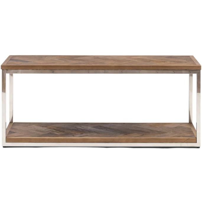 Elegant und praktisch: Der tolle Bushwick Couchtisch von Rivièra Maison ist aus glänzendem Edelstahl und recyceltem Ulmenholz gefertigt und mit zwei praktischen Ablageflächen ausgestattet. Das schicke Fischgrätmuster und die wunderschöne Maserung des Holzes gibt den Rivièra Maison Couchtisch nicht nur einen besonderen Look, sondern macht jeden handgefertigten Tisch auch zu einem echten Unikat. Überzeugen Sie sich selbst und holen sich mit dem Bushwick Couchtisch von Rivièra Maison ein exquisites und wunderschönes Möbelstück in Ihr Zuhause!