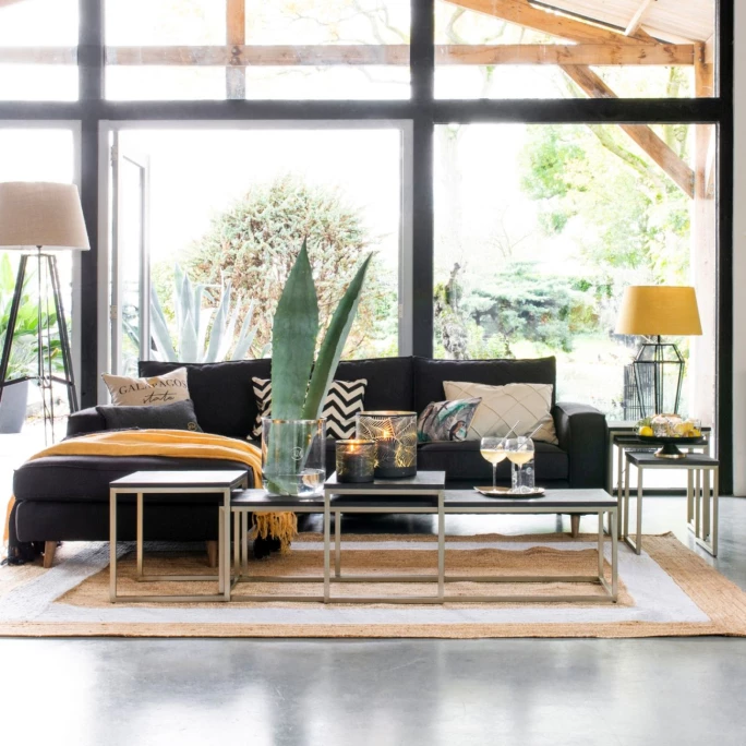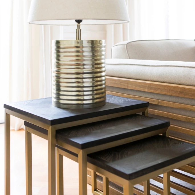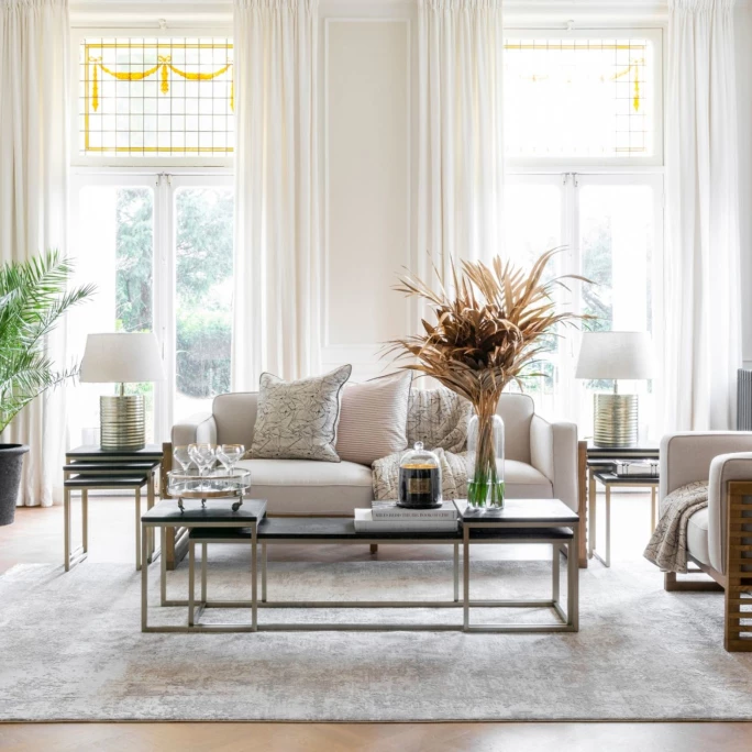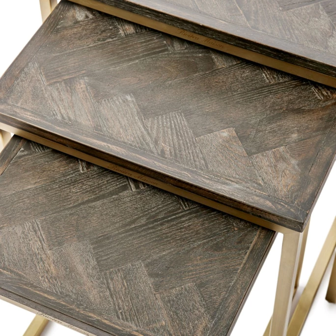 Schick und platzsparend: Die tollen Costa Mesa Beistelltische von Rivièra Maison werden als praktisches 3er-Set zu Ihnen geliefert. Aus mattem Edelstahl und recyceltem Eichenholz gefertigt, lassen sich die Costa Mesa Tische bei Nichtgebrauch platzsparend ineinanderschieben. Das schicke Fischgrätmuster und die wunderschöne Maserung des Holzes gibt den Rivièra Maison Beistelltischen nicht nur einen besonderen Look, sondern macht jeden handgefertigten Tisch auch zu einem echten Unikat. Lassen Sie sich von dem edlen Design begeistern und setzen mit dem Costa Mesa 3er Beistelltisch-Set von Rivièra Maison stilvolle Akzente in Ihrem Zuhause!