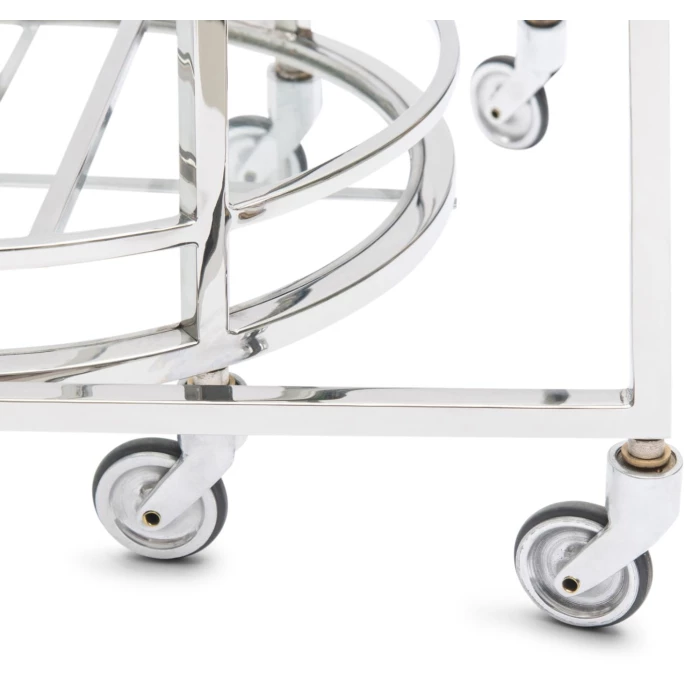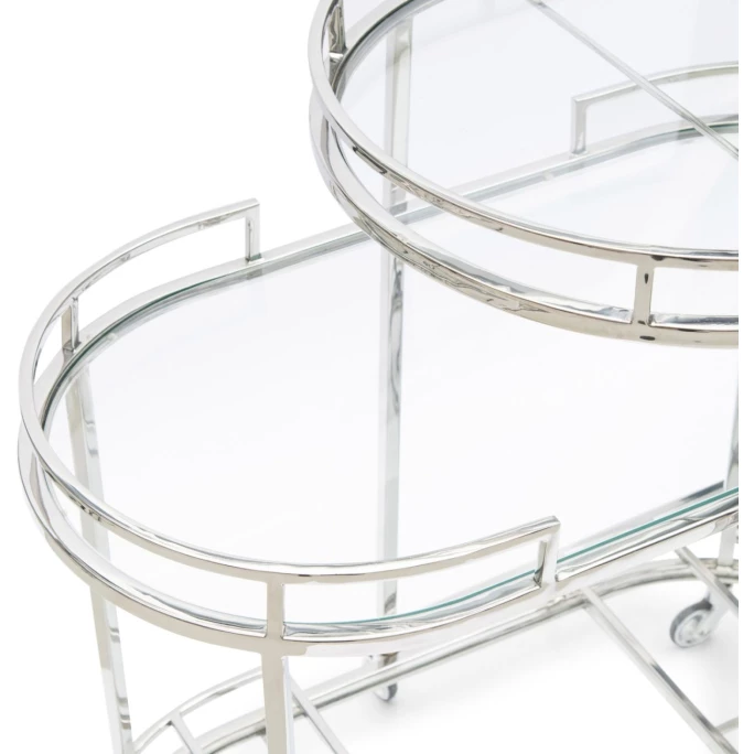 Die Crosby Barwagen von Rivièra Maison sind ein edles Set aus zwei Beistelltischen, die wunderbar in ein glamouröses Loft passen. Aus rostfreiem Stahl und Glas gefertigt, begeistern die beiden Tische durch einen extravaganten Look mit ovalen Tischplatten und erhöhtem Rand. Beide Crosby Tische sind mit leichtläufigen Rollen ausgestattet, unterschiedlich hoch und lassen sich daher problemlos übereinander stellen. Präsentieren Sie Ihre feinsten Gläser, Karaffen und besten Getränke auf diesen Tischen oder schieben diese schnell und einfach zu Ihren Gästen. Überzeugen Sie sich selbst vom dem praktischen Crosby Barwagen-Set von Rivièra Maison und setzen stilvolle Akzente in Ihrem Zuhause.
