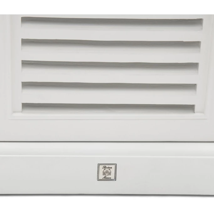 Mit dem The Breakers Nachttisch right von Rivièra Maison bringen Sie einen modernen Landhausstil in Ihr Zuhause. Egal ob im Schlafzimmer, im Flur, im Wohn-, Ess- oder Arbeitszimmer: The Breakers macht einfach überall eine gute Figur. Aus lackiertem Pappelholz gefertigt, begeistert der kleine Schrank durch einen hellen, zeitlosen Look. Hinter der Lamellentür mit linkem Türanschlag ist der Stauraum zweifach aufgeteilt. Und dank der zusätzlichen Schublade lassen sich jede Menge Dinge in dem schicken Nachttischschrank verstauen. Das kleine Rivièra Maison Metall-Logo auf dem unteren Sockel rundet den tollen Look dabei perfekt ab. Aufgrund des verwendeten Naturmaterials kann es zu Abweichungen in der Farbe und der Maserung kommen. Die ist jedoch kein Manko, sondern macht jeden Rivièra Maison Nachttisch zu einem echten Unikat. Überzeugen Sie sich selbst und holen sich mit dem tollen The Breakers Nachttisch right von Rivièra Maison ein einzigartiges und vielseitig einsetzbares Möbelstück in Ihr Zuhause.