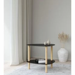 Lind DNA Hippo Holzkorb + Beistelltisch – 32x38x31 Cm – Black-anthracite/black/nature