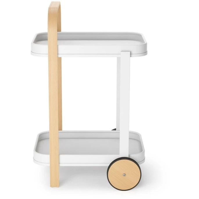 Der moderne Umbra Bellwood Servierwagen ist ein mobiler Beistelltisch und somit eine perfekte Ergänzung daheim. Der zweifarbige Barwagen von Umbra kann Dank der gummierten Räder leicht bewegt werden, so dass einem schnellen Wechsel des Einsatzortes daheim keine Grenzen gesetzt sind. Es kommen Gäste? Kein Problem, denn der von allen Seiten offene Barwagen bietet auf zwei Ebenen genügend Platz für Barzubehör, Accessoires, Weingläser, Dekoration und vieles mehr. Zusätzlich können die 2 Tabletts zum Servieren abgenommen werden. Umbra ist ein international operierendes Designunternehmen, das für originelle, moderne, coole, funktionale und bezahlbare Produkte für Wohnen & Leben bekannt ist. Aufgrund der hochwertigen Verarbeitung in Hinblick auf die Qualität der Produkte, gewährt Umbra mit gutem Gewissen eine 5-jährige Hersteller-Garantie. Bestellen Sie sich den Umbra Bellwood Servierwagen und die nächste Party kann kommen.