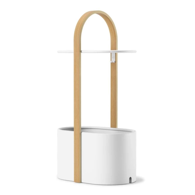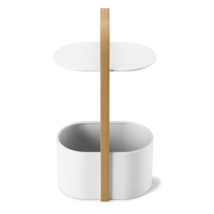 Der Beistelltisch Hub aus dem Hause Umbra ist ein Hingucker in jedem Raum und flexibel einsetzbar. Er besteht aus Metall und Holz, welches einheitlich beschichtet ist. Die obere Plattform eignet sich wunderbar, um das Handy oder ein Glas Wein abzulegen. Ein integrierter Haken und ein Loch in der unteren Schale sorgen dafür, dass das Ladekabel sicher und nahezu unsichtbar verstaut werden kann. Der große Standfuß besteht aus einer tiefen Schale, die für Bücher, Snacks oder andere Kleinigkeiten genutzt werden kann. Nicht nur im Wohnzimmer, auch in der Küche oder neben dem Bett ist der Beistelltisch Hub ein praktisches Accessoire. Bestellen Sie den schicken Tisch aus dem Hause Umbra noch heute!