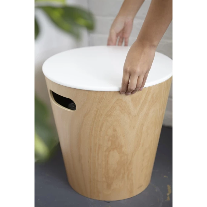 Der schicke Hocker Woodrow aus dem Hause Umbra dient als stilvolle Sitzgelegenheit oder Beistelltisch. Die klassische Form wird durch den in weiß abgesetzten Deckel aufgewertet. Zusätzlich sind zwei Grifföffnungen eingebaut, sodass der Hocker sich leicht transportieren lässt. Im Inneren lassen sich Dinge wie Magazine oder Decken aufbewahren. Die Herstellung aus Holz macht den eleganten Hocker zum Hingucker. Bestellen Sie den hochwertigen Hocker Woodrow von Umbra und lassen Sie sich von Qualität und Design begeistern!