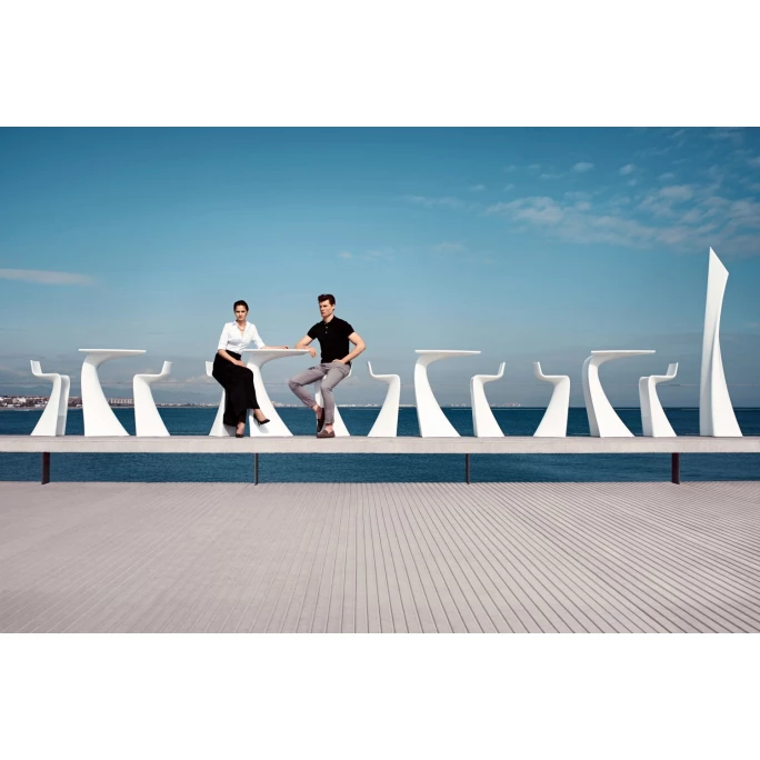 Der bezaubernde WING BAR Tisch des Designlabels Vondom, begeistert mit einer einzigartigen Form, die von schlichter Eleganz begleitet ist. Entwickelt wurde die Möbelkollektion von dem Stardesigner-Duo: Joaquín Torres und Rafael Llamazares, welche mit der WING BAR Kollektion das Ergebnis der Faltung von dynamischen Projektionen darstellen, die sich von geraden und kurvenförmigen Formen ableiten. Die Edelmarke Vondom schafft damit einen harmonischen Dialog zwischen Umwelt und Form, welche als Designkultur auch den einfachsten Raum in ein Ambiente voller Glamour, Einzigartigkeit und Außergewöhnlichkeit verwandelt. Das spanische Luxuslabel Vondom ist dabei weitaus mehr als nur eine Designermöbelmarke. Die Firmenphilosophie beruht auf der Schaffung exklusiver und zeitloser Stücke aus nachhaltigen, recycelten und recycelbaren Materialien. So werden Kunststoffabfälle aus dem Meer in recycelbare Produkte umgewandelt, welche selbstverständlich die hohen Qualitäts-, und Designstandards einhalten für die Vondom bekannt ist. Als Endergebnis entstehen nachhaltige Designermöbel die nie mehr weggeworfen werden, sondern ewig halten. Gefertigt wurde der wunderschöne Couchtisch WING BAR Tisch aus Polyethylen, ein vielseitiger Kunststoff mit vielen Vorteilen gegenüber anderen Materialien. Er hält extremsten Wetterbedingungen stand, Wasser kann ihm genauso wenig anhaben wie Sonnenlicht, er ist schlagfest und seine Farbbrillianz bleibt über die gesamte Nutzungsdauer erhalten. Aufgrund der niedrigen Dichte ist Polyethylen ein ökologisch nachhaltiges Material, das zu 100 % recycelbar ist. Schöne Stunden im Garten, auf dem Balkon oder als Highlight in jedem Wohnbereich sind mit dem In-& Outdoor Tisch WING BAR Tisch durch seine extrovertierte, zeitlose Form garantiert. Der pflegeleichte Designer-Couchtisch lässt sich besonders einfach reinigen, es genügt ihn mit einem feuchten Tuch und Wasser abzureiben. Fertig! Wählen Sie die für sich passende Variante, als buntes Highlight oder schlichter Eleganz in vielen verschiedenen Farben und Größen. Wir bieten Ihnen immer die perfekte Auswahl hier in unserem Ambiendo Shop. Mit dem wunderschönen WING BAR Tisch von Vondom erhalten Sie ein Designerstück der Oberklasse, das in seinem Erscheinungsbild vollkommen ist und immer ein absolutes Highlight darstellt!